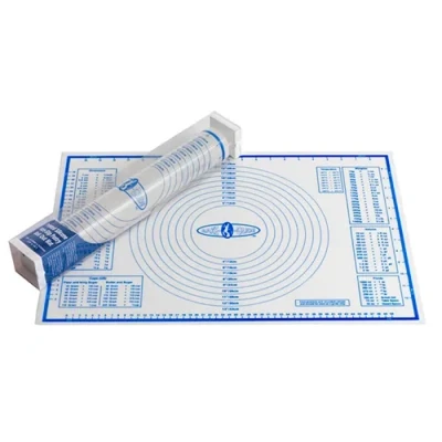 Non-Slip silicone coated work surface suitable for rolling out all forms of pastry, marzipan, sugarpaste, also suitable for chocolate work and kneeding dough. The mat comes printed with handy conversion charts, circle guides and metric/imperial rulers; all of which help to take the guess work out of baking and cooking.