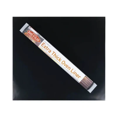 Keep your oven looking spick and span with the Bake-O-Glide Extra Thick Oven Liner 500mm x 450mm. Manufactured from a heavy duty material with a 100% PTFE coating, this extra thick oven liner can easily be cut to size and will put a stop to the back breaking scrubbing and the use of unpleasant chemicals when cleaning the base of the oven. The extra thickness makes this oven liner suitable for use in fan and convection ovens.This Bake-O-Glide oven liner can be reused hundreds of times. Burnt on spill will easily wash off the non-stick surface in warm soapy water. It's also dishwasher safe.Heat resistant up to 260°C. If your oven has a self cleaning function always remove the liner before starting the cleaning cycle. If your oven has heating elements below the oven floor, this liner should be placed on the lowest shelf, at least 40mm from the oven base.This Bake-O-Glide Extra Thick Oven Liner measures 500mm x 450mm.