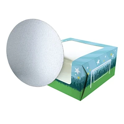 FOOTBALL BOX - Transport and present your cakes and tasty treats in style with this 10" Football windowed cake box. This football themed cake holder is the perfect choice for any sports fan or team celebration and for those who wish to match the cake box with their chosen theme whether it's a birthday party or end of season celebration. CAKE BOARD & BOX COMBO - This premium cake box and cake card set is the perfect way to efficiently and safely transport your special homemade cakes for birthdays, celebrations and parties. Pack contains 1 x 10" cake card and 1 x 10" cake box shrink wrapped together for hygiene. PRINTED CAKE BOX – The brightly coloured square cake box is perfect for keeping your freshly baked cakes free from damage and for displaying your finest creations at a birthday party or celebration. Made from strong, food-safe, cardboard these cake boxes will protect and display your bakes, the box measures approximately 10" x 10" x 5" and features a see through acetate window on the top and front. 3mm CAKE BOARD – The round 10 Inch round cake board, also known as a cake card, is perfect for sponge cakes including chocolate cakes, vanilla sponges, or strawberry cakes and desserts. A 3mm thick cake card is ideal for lighter bakes like birthday cakes, the attractive silver foil is hand finished and pairs perfectly with any decorated celebration bake. EASY TO ASSEMBLE - The printed cake box and board pack is delivered flat for easy storage but is very easy to assemble meaning you will be ready to transport your cake or cupcakes in seconds. Shrink wrapped for hygiene., Weight: 0.4629707502 pounds, Manufacturer: Baked With Love