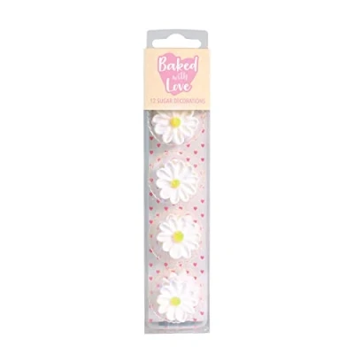 Assorted Daisy Sugar Piping’s - This pack of 12 daisy sugar decorations are perfect cupcake toppers for your flower themed cupcakes. These hand made royal icing daisy decorations are ideal for all types of cupcakes and cakes.Their simple yet beautiful design turns an everyday bake into a special treat. Handmade Cake Decorations – Handmade cake toppers look authentic and are perfect for decorating cupcakes, fairy cakes, cakes and bakes for any occasion! Each sugar piping is approximately 25mm in size. Multi-Purpose Cupcake Decorations – These cupcake toppers are perfect for birthdays parties, parties and celebrations. Edible Cake Decorations – Edible decorations are made from sugar and corn-starch that are suitable for vegetarians and coeliacs. Ready To Use – No need to cut out or glue these sugar decorations, just place them straight on top of buttercream, icing or sugar paste and instantly upgrade your bakes for a themed party! Mix and match with other Baked with Love cake decorations., Weight: 0.0220462262 Pounds, Manufacturer: Baked With Love
