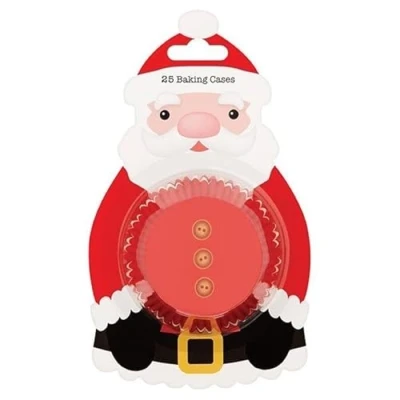 Baked with Love Santa Baking Cupcake Cases, Christmas Greaseproof Paper Cups for Festive Holiday Treats Pack of 25,Red