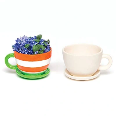 STEM Learning: Kids ceramic painting kits are great to encourage creativity and helps hand eye coordination. One decorated, you can use them for planting - teach kids another skill- photosynthesis and growing with this ceramic tea cup Versatile Fun for All: Plain ceramic for kids is ideal to "paint your own" and use with acrylic paints and paint pens, art stuff, glitter and gems (not included). No need to oven bake but by adding a coat of varnish, you create a shiny finish NOTE: always paint both the inside and outside of ceramic ornaments pot with acrylic paint to make them waterproof and prevent leakage. Included in the pack: Measures 12 x 10 cm (4.7 x 3.9 inch). This ceramic shape is a blank canvas ready to be transformed with your creative ideas. NOTE: these cup and saucers are attached and cannot be separated. Made by experts: Baker Ross has been designing and providing the very best art and craft supplies, and toys to schools, groups and parents for over 40 years. All products conform to General Product Safety Regulations, and state age recommendation where applicable.
