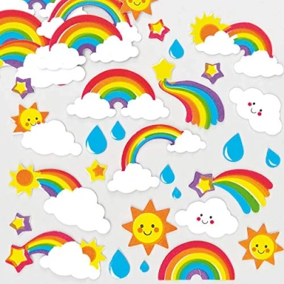 Stickers for Kids: This multipack of 3D self-adhesive foam stickers contains a range of colourful rainbow designs. Kids will enjoy choosing from the range of fluffy clouds, sunshine's, raindrops and more Kids Arts and Crafts Supply: Both boys and girls will enjoy adding these adorable stickers to cards, crafts and presents. This value pack of stickers is perfect for embellishing crafts at school, in the classroom and at home Versatile Craft Stickers: Kids can simply peel and stick these mess free stickers embellishments, to add them to Baker Ross card blanks, card shapes and many other paper and card crafts (not included) Included in the Pack: This pack contains 120, in 24 assorted designs. Sticker size approx. 8mm-65mm Made by Experts: Baker Ross has been designing and providing art and craft supplies, and toys to schools, groups and parents for over 40 years. All products conform to General Product Safety Regulations, and state age recommendation where applicable.