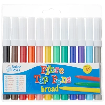 Colorful Creativity: Explore vibrant creativity, unleash your imagination, and bring your colorful ideas to life with this versatile set of broad tip markers! Effortless Precision: The chunky barrel design ensures an easy grip for precise detailing and effortless strokes. They're perfect for colouring scribbling and writing Mess-Free Fun: With washable water-based ink, these pens promise a mess-free creative journey for both clothes and skin! Included in the Pack: This pack contains 12 pens in 12 assorted colours. 14cm long. 4mm nib Made by Experts: Baker Ross has been designing arts and crafts supplies for over 40 years. All products conform to General Product Safety Regulations, and state age recommendation where applicable.