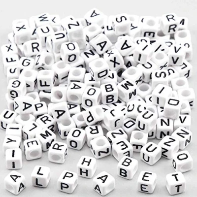 Baker Ross AR285 Black & White Alphabet Cube Beads Pack of 750, Pony Bead Crafts for Kids Arts and Jewellery Making
