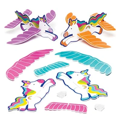 Easy to Use: These fun unicorn gliders are cute, easy to assemble, and fun for kids to craft and play with. It is a simple aero plane model with a rainbow twist! Unicorn Designs: This pack of 8 assorted designs includes 4 assorted unicorn designs, and 4 assorted colours including purple, turquoise, orange and pink. Creative Ideas: Unisex crafts are perfect for girls and boys. Use for birthday party favours, prizes, lucky dip, pinata or loot bag filler, stocking filler, teachers, group projects, party games, and more. Included in the Pack: Easy for little hands and simple for children to make, each unicorn glider measures 17cm. Made of paper-covered polystyrene. For ages 3+. Made by Experts: Baker Ross has been designing and providing the very best art and craft supplies, and toys to schools, groups and parents for over 40 years. All products conform to General Product Safety Regulations, and state age recommendation where applicable.