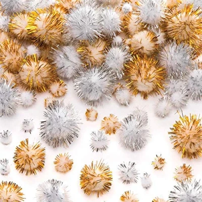 Glitter Pompoms: Give your Christmas crafts a finishing touch with these gold and silver pompoms balls! Add winter effects to crafts, collages and displays. Pom Pom Decorations: Glue these glitter pom poms together to form an unusual bauble, or string them up across the mantel in a festive garland. Or maybe they’ll decorate the front of a card, be turned into a headdress, or sewn onto a t-shirt as a glittery trim. Christmas Crafts Supplies: There’s no limit to what can be done, so explore, get creative and have some fun … Sew, glue, shape and design! Included in the Pack: Each pack contains 3 sizes - 10mm, 15mm & 20mm (0.2, 0.6, 0.8 inch). Use with glue or glue dots (not included). Made by Experts: Baker Ross has been designing and providing art and craft supplies, and toys to schools, groups and parents for over 40 years. All products conform to General Product Safety Regulations, and state age recommendation where applicable.