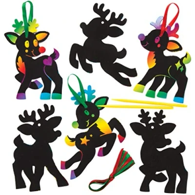 Baker Ross AR701 Reindeer Scratch Decoration Kits, Kids Fun Christmas Arts & Crafts Project (Pack of 10), Assorted