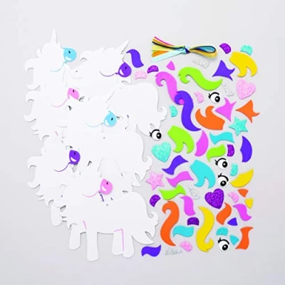 Sparking Imagination: Imaginative kids will be amazed when they spot these unicorn decorations! With a variety of mix and match designs available, there's endless fun to be had. Create Your Own Unicorn Magic: Choose a pack and get creating to unveil the unicorn surprise! With different colors and swishing tails and manes, each unicorn is unique and ready to be enjoyed over and over again. Easy Assembly: Peel, stick, and layer the pieces to bring your unicorn creations to life. Once completed, admire your handiwork on display for all to see! Stick, design, hang, and let the unicorn magic shine! Included in the Pack: This pack contains 6 kits. Each kit includes foam unicorn template, self-adhesive foam pieces & hanging ribbon. Height 11.5cm Made by Experts: Baker Ross has been designing arts and crafts supplies for over 40 years. All products conform to General Product Safety Regulations, and state age recommendation where applicable.