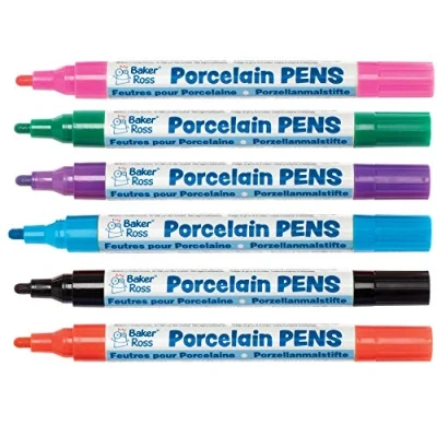 Paint pens for Porcelain and Glass: Each Coloured pen is filled with oil-based acrylic paint and has a glossy finish. Permanent Designs: Porcelain and ceramic can be heat-fixed in the oven. To make your painted design permanent, use a satin varnish (not included) This will help to seal your design and reduce the risk of fading with washing. Creative Ideas: Use for vases, pottery, flowerpots, candleholders, baubles, ornaments and ornaments. personalize crafts with these fun Coloured pens. How To Use: Cannot be heat fixed and not dishwasher proof. Do not paint on surfaces directly used for eating or drinking. Paint is semi-permanent when used on smooth surfaces like glazed ceramics and will wash off if scrubbed. Made by Experts: Baker Ross has been designing and providing art and craft supplies for over 50 years. All products conform to General Product Safety Regulations, and state age recommendation where applicable.