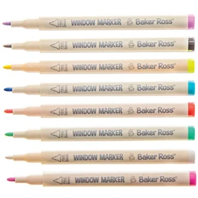 Baker Ross AT859 Fine Tip Glass Pens, For Kids Painting Kit and Arts Crafts Projects (Pack of 8), Assorted,Yellow,Blue,White,Green,Red,Pink,Black,Purple