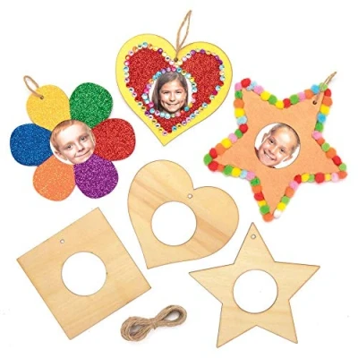 Fun to Make: These wooden picture frames are a fun crafting project for aspiring artists. Kids will enjoy customizing and personalizing their own design. This makes a unique gift or keepsake. Crafts for Kids: Let them explore different patterns and shades adding splashes of paint and glitter, drawing with pens or adding pretty gems (not included). There’s endless potential the only limit is on your imagination! When your photo frame is all nicely decorated, simply pop your favourite photo in the back and you’re done! Ready to display around the house, give to a friend or pop in your room for all to see! Included in the Pack: 5 assorted designs - Flower, Star, Square, Heart & Circle. Frame size 9 - 11.5 cm (3.5 x 4.5 inch), Aperture size 4 cm (!.5 inch) diameter. Made by Experts: Baker Ross has been designing and providing the very best art and craft supplies, and toys to schools, groups and parents for over 40 years. All products conform to General Product Safety Regulations, and state age recommendation where applicable.