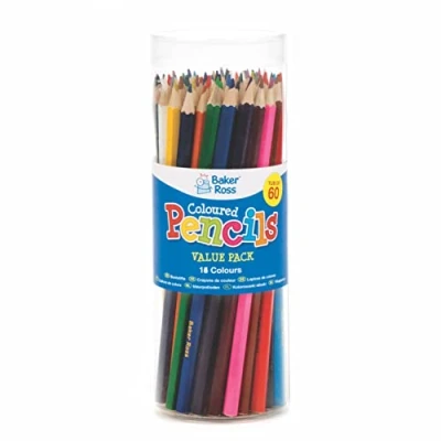 Baker Ross AV258 Value Pack of Kids, Suitable for Classroom Stationery Kits, Adults Colouring Pencils and Arts Crafts Supplies, Assorted, (Pack 60)