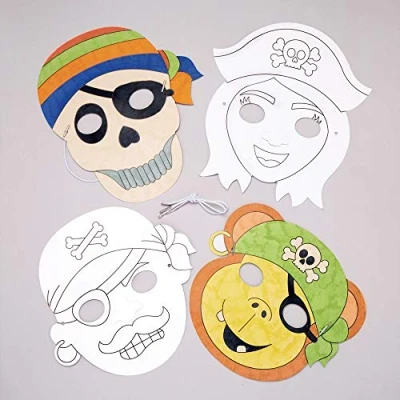 Embrace your inner pirate and become a treasure-hunting buccaneer Pick your favourite pre-drawn design and give it a new lease of life Use pens and pencils, or a selection of paints, then you’re almost ready to slip it over your face Affix the elastic and it’s time to go, so all aboard for a treasure hunt - HEAVE, HO! Masks measure 19.8 cm and are made from card
