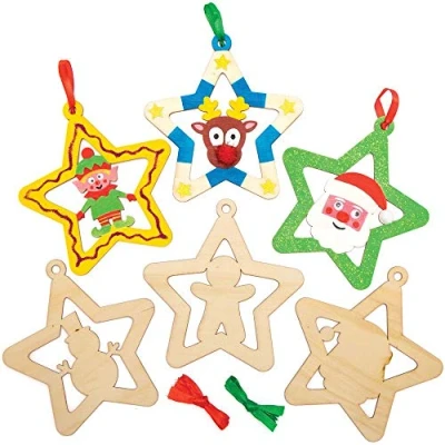 twinkle twinkle little star, what a beautiful creation you are! our wooden stars are a christmas craft favourite amongst children, schools and group craft activities. handmade touch: creative kids will go mad for the chance to show off their imagination skills to create a truly special bauble for the tree this year that’s all homemade! crafts for kids: let them explore different patterns and shades adding splashes of paint and glitter, drawing with pens or adding pretty gems (not included). there’s endless potential the only limit is on your imagination! included in the pack: our wooden star decorations include 10 ornaments in each pack with 5 designs: snowman, elf, rudolph, santa and gingerbread man. each decoration measures 13 cm (5.1 inch) in diameter. hanging ribbon in red and green also included. safety first: all baker ross toys & crafts are covered by ce & general product safety regulations. baker ross caters to a variety of ages and leaves it to customers to assess whether a child is old enough for a particular item.