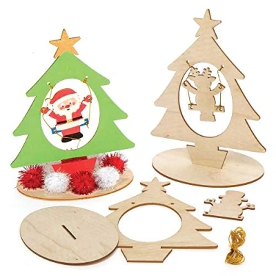 Baker Ross AX428 Christmas Tree Wooden Character Art Kits Pack of 4, Woodcraft for Kids Festive Arts and Crafts Activities