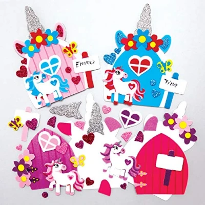 Fairy Craft Kit: This multipack of make your own fairy doors is an entertaining craft activity for children that love unicorns. These mess free kits require no glue, and contains all the sticker pieces and embellishments needed Arts and Crafts for Kids: Boys and girls of all abilities will be able to complete these simple to make foam decorations. Kids can peel and stick the foam pieces including hearts, butterflies, and flowers, and arrange them on the template Foam Decorations: Finished fairy doors are great decorations for skirting boards, walls and doors, ready for the fairies to be let in. This value pack of kits can also be used as a creative craft activity for fairy themed birthday parties or craft parties Included in the Pack: This pack contains 4 kits, in 4 assorted designs. Each kit includes foam template and self-adhesive foam decorations. Designs measure 15cm x 13cm. Instructions included. For ages 3+. No glue required Made by Experts: Baker Ross has been designing and providing the very best art and craft supplies, and toys to schools, groups and parents for over 40 years. All products conform to General Product Safety Regulations, and state age recommendation where applicable.