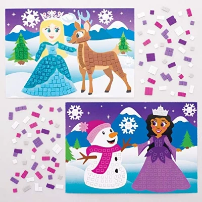 Baker Ross Christmas AT194 Snow Princess Mosaic Picture Kits Pack of 4, Arts and Crafts for Kids, Assorted