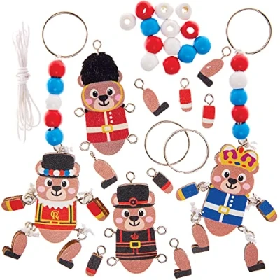 British Arts and Crafts: This multipack of royal teddy bear keyring danglers is perfect for keeping kids entertained. Kids can mix and match the colourful beads and bear pendants to create a cute keyring accessory Kids Craft Kits: Boys and girls of all abilities can craft these simple to make bag danglers. This mess free craft requires no glue, and includes all the pieces kids need to make danglers in red, white and blue Keyring for Kids: Kids can attach finished keyrings as a fun dangling accessory to bags, pencil cases, keys and more! Danglers can also be given to friends as a handmade present Included in the Pack: This pack contains 3 assorted bead colours - red, white and blue, in 4 assorted royal designs. Each kit contains wooden teddy bear pendant, coloured wooden beads, white cord and metal split ring. Finished size 13cm. Instructions included Made by Experts: Baker Ross has been designing and providing art and craft supplies, and toys to schools, groups and parents for over 40 years. All products conform to General Product Safety Regulations, and state age recommendation where applicable.
