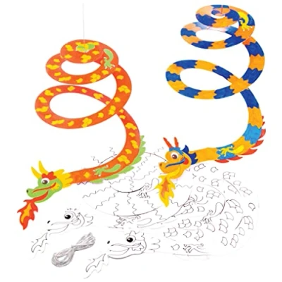 Dragon Crafts for Kids: These whirling, twirling dragons are almost ready to dance through the night!Take your colouring skills to the next level with these cool craft designs. Spiral Activity Toy: Each fearsome dragon is looking a little pale, but we think you’ve got what it takes to get them into shape. Arts and Crafts for Kids: Use pens, pencils, crayons or paints (not included) to add all your favourite shades and bring these critters back to their best - when they’re finished and assembled they’re sure to impress. Included in the Pack: Each pack contains pre-printed card shapes and silver cord. 2 assorted designs. Mobile size approx. 30cm when hanging (11.9inch). Colour in using our Deco pens or fibre tip pens (not included). Made by Experts: Baker Ross has been designing and providing art and craft supplies, and toys to schools, groups and parents for over 40 years. All products conform to General Product Safety Regulations, and state age recommendation where applicable.