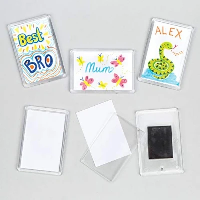 Personalise your space: transform any magnetic surface into a canvas for your creativity with our magnet kits! You can design your own creations with these transparent magnets. Endless possibilities: Whether you want to create unique designs or display your favourite pictures, these magnet kits offer endless possibilities for customisation. Add a personal touch: From fridges to magnetic boards, these magnets are perfect for adding a personal touch to any space. Included in the pack: This pack contains 6 magnets. The magnets measure 68mm x 43mm. Each magnet comes with two blank inserts. Made by Experts: Baker Ross has been designing arts and crafts supplies for over 40 years. All products conform to General Product Safety Regulations, and state age recommendation where applicable.