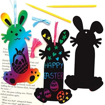 Baker Ross Easter Bunny Scratch Art Bookmarks Pack of 10, Craft Kits for Kids (AX754)