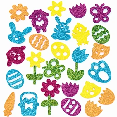 EASTER CRAFTS FOR KIDS: If you're looking for an Easter craft project for kids, you've found it. These Easter Gillter foam stickers are great for all crafts and kids will love decorating their own projects to celebrate Easter. KIDS EASTER STICKERS: Creative kids will love making their own Easter Bunny cards, collage and decorations will enjoy using these easy to peel and stick self-adhesive glitter stickers. Each pack includes 120 stickers in two designs. PERFECT FOR KIDS CRAFTS: Especially designed for kids craft activities, these stickers are suitable for children of all ages and can be used for parties, in the classroom, group craft activities or Easter family-fun time. Our self-adhesive stickers for kids are perfect for crafts and collage. Use for school supplies, art supplies, reward stickers for children, embellishments, card making, scrapbooking supplies, and more., Manufacturer: Baker Ross