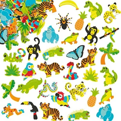 Craft Kits for Kids: Bright rainforest themed foam stickers. Kids will create forest curiosities and they can take them wherever they go with these cute and vibrant critters. Get Creative: Animal stickers for children to enjoy because of the simple technique, peel and stick to jazz up any of their next arts and crafts creations. Multi Use Crafts: This kids craft set is perfect for them to personalise by drawing, designing and painting. Ideal for decorations, party tasks, craft group activities, collages and home crafting. Included in the Pack: 100 rainforest themed foam stickers in 25 assorted designs. Sticker sizes approx. 3-6 cm (1.1-2.3 inch). Made by experts: Baker Ross has been designing and providing the very best art and craft supplies, and toys to schools, groups and parents for over 40 years. All products conform to General Product Safety Regulations, and state age recommendation where applicable.