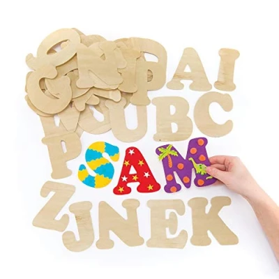 Baker Ross EV266 Wooden Letter Templates (Pack of 52) For Kids to Decorate and Display, 11cm