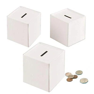 Baker Ross EV3024 Cube Money Boxes (Pack of 3), Perfect for Children to Decorate and Personalise, Ideal School, Home Craft Groups, Assorted, 3.9 x inch