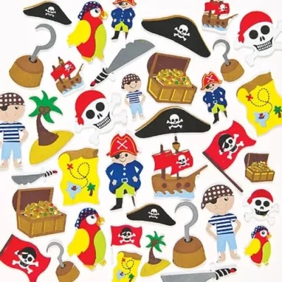 Baker Ross EV3215 Pirate Foam Stickers (Pack of 96) for Kids to Decorate, Arts and Crafts, Vinyl, Assorted
