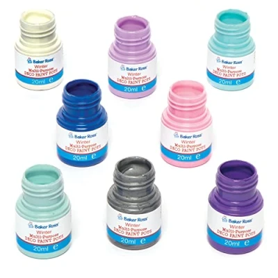 Kids Paint: Add colour to your projects with this colourful collection of super high gloss water-based paints. Great for use on vases, pottery, flowerpots, candleholders, baubles and ornaments Paint for Kids: Highly versatile water based paint. Bright shiny finish that dries quickly and for use on most surfaces including wood, porcelain, glass and paper Art Supplies for Kids: This craft pack is perfect for creative minds to get started on and personalise a project. Ideal for schools, craft groups, home activities and more. This paint is not suitable as finger paint Included in the Pack: Each pack contains 8 deco paint pots in 8 assorted winter colours (Light Blue, Dark Blue, Light Purple, Pink, Dark Purple, Ice Blue, White and Silver), perfect for all your arts and crafts projects. 20ml per pot Made by Experts: Baker Ross has been designing and providing art and craft supplies, and toys to schools, groups and parents for over 40 years. All products conform to General Product Safety Regulations, and state age recommendation where applicable.