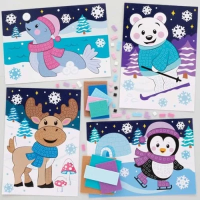 Baker Ross FC287 Artic Pals Mosaic Picture Kits Pack of 4, Winter Tiles Arts and Crafts, Christmas for Children, Creative Activities Kids