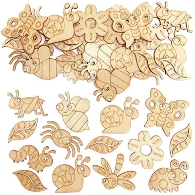 Baker Ross FC721 Bug Mini Wooden Shapes Pack of 100, Wood Crafts for Kids, Card Making Supplies,