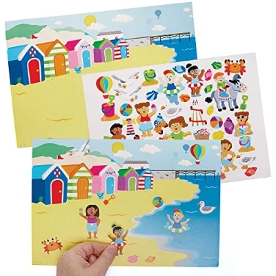 Arts and Crafts for Kids: Kids can create their own seaside scene decorated with our repositionable stickers! With over 30 stickers to choose from kids will love sticking and changing up their pictures! Travel Activities for Kids: Our sticker scenes are ideal for children to complete whilst travelling, or as party bag fillers for kids' birthday parties Stickers for Kids: Kids can simply peel and stick the stickers into their desired positions on the background scene. Stickers are repositionable, so scenes can be changed and mixed up easily Included in the Pack: This pack contains 5 kits. Each kit includes printed card scene and 30+ repositionable stickers. Sticker designs including beach ball, seashells, seagulls, donkey ride, bucket and spade, light house, crabs and much more. Scene sheet size 27cm x 18cm Made by Experts: Baker Ross has been designing and providing the very best art and craft supplies, and toys to schools, groups and parents for over 40 years. All products conform to General Product Safety Regulations, and state age recommendation where applicable.