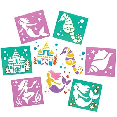 Baker Ross FE203 Mermaid Stencils Pack of 8, Plastic for Children, Art Set Kids to Create and Design Themed Books, Cards Pictures