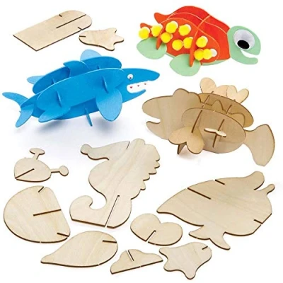 Dive into Decor: These sealife 3D woodcraft kits are perfect for creating beautiful decorations! They're 2-in-1 fun as kids can decorate and then display as fun models. Marine Marvels: Children who love marine life will be thrilled to bring familiar faces like sharks, sea turtles, and seahorses. Pre-cut wooden pieces slot easily into place, and then it's time to add color with pens, glitter, and paints Easy Assembly, Endless Fun: Once completed, kids will be eager to display their creations on the shelf or mantel to show off to everyone! Paint, build, decorate, and display with pride! Included in the Pack: This pack contains 5 models. Each kit includes wooden pieces for self-assembly. 8cm-15cm long Made by Experts: Baker Ross has been designing arts and crafts supplies for over 40 years. All products conform to General Product Safety Regulations, and state age recommendation where applicable.