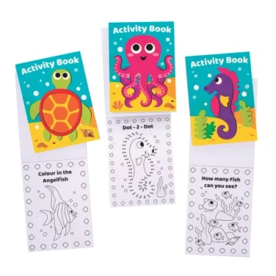 Baker Ross FE529 Sealife Mini Actvity Books Pack of 12, Includes Puzzles, Stickers, Dot to and Colouring Pages for Kids