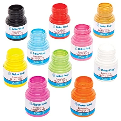 Baker Ross FE593 Porcelain Paint Pots Pack of 10, Ceramic for Kids,20 ml (Pack 10)