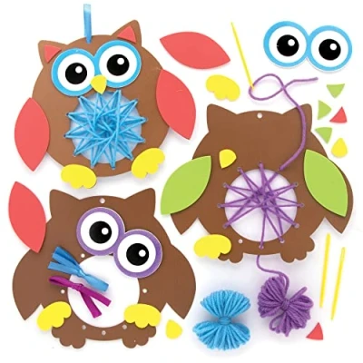 Introduce Children to Weaving: Creative children will enjoy this new project as they learn to weave with card templates to create cute owl decorations. Craft Kits for Kids: Easy to make weaving sets with pre-cut slots making it easy for little fingers to feed the wool in and out. Watch as the over and under pattern takes shape, then assemble your owl and put on display. Kids Activity Packs: These kits are great for a beginners who are just starting out, weave with friends, make one as a gift for family, use for an art party or arts and crafts session at school or at home. Included in the Pack: 6 owl weaving decoration kits with 2 assorted wool colours (Blue & Purple). Each kit includes pre-punched card template, self-adhesive foam decorations, wool, ribbon and plastic needle. Each assembled owl decoration will measure 17 x 15cm (6.7 x 5.9 inch). Instructions included. Made by Experts: Baker Ross has been designing and providing art and craft supplies, and toys to schools, groups and parents for over 40 years. All products conform to General Product Safety Regulations, and state age recommendation where applicable.