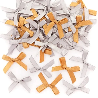 Baker Ross FE800 Gold and Silver Self Adhesive Bows Pack of 72, Arts Crafts for Boys Girls, Christmas Decorations Activities Children,