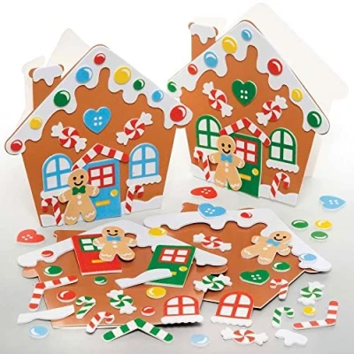 Baker Ross FE939 Gingerbread House Card Kits Pack of 6, Making Kit for Kids, Make Your Own Christmas Cards, Ideal Festive Arts and Crafts Project
