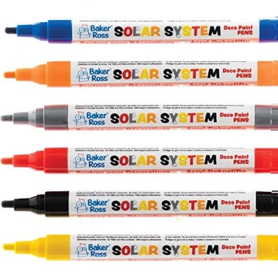 Baker Ross FE978 Solar System Deco Paint Pens Pack of 6, Broad Tipped, Oil Based Acrylic Markers for Kids Arts and Crafts Projects, Ideal Wood, Porcelain, Glass, Plastic Metal