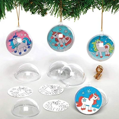 Bauble Craft Kit: These clear plastic baubles come with festive unicorn colour in pictures that can be added to baubles to create colourful picture baubles. Kids can pick their own colours to make these unicorns come to life, and then hang the baubles as fun handmade Christmas decorations Kids Crafting: Kids of all abilities will be able to craft these easy to make festive baubles. These baubles are mess free and do not require any glue. This multipack of baubles is sure to keep boys and girls entertained this Christmas and is perfect for crafting at home and at school Christmas Crafts: Kids can colour in the paper insert using Baker Ross pencils or felt tip pens (not included). Decorations can be finished by using the handy hanging cord supplied, and then hung from Christmas trees or at Christmas parties as festive decorations Included in the Pack: This pack contains 8 baubles, in 8 designs. Each pack includes 2-part transparent plastic baubles, pre-printed card inserts and gold cord. Baubles measure 46mm diameter. For ages 3+ Made by Experts: Baker Ross has been designing and providing the very best art and craft supplies, and toys to schools, groups and parents for over 40 years. All products conform to General Product Safety Regulations, and state age recommendation where applicable.