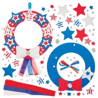 Baker Ross FN018 Stars & Stripes Wreath Kits Pack of 3, Craft for Kids, American