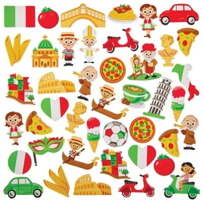 Baker Ross FN044 Italy Foam Stickers Pack of 150, Italian for Kids Crafts and Cards
