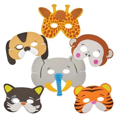 Baker Ross FN146 Animal Foam Masks Pack of 12, DIY Costume Kits for Kids, Pretend Play Accessories