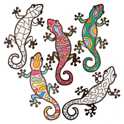 Baker Ross FN194 Gecko Lizard Colour in Window Decorations Pack of 15, Stained Glass Effect Kids Craft