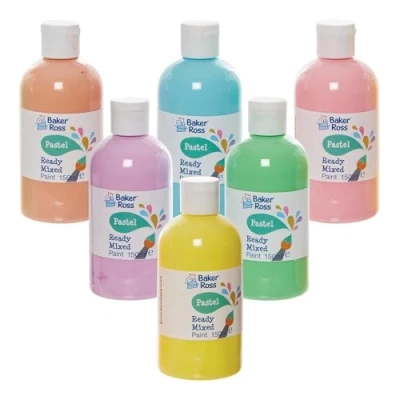 Poster Paint for Kids: This set of water-based washable paint is perfect for children to paint on paper and card. Colours are pre-mixed, so kids can start painting straight away Arts and Crafts for Kids: Creative boys and girls will enjoy painting their own designs and patterns with this paint at home, in school and in classrooms. These paints are perfect messy play and painting craft projects Paint Bottles: Pair these paints with Baker Ross painting tools including paint brushes, water pots, canvases and more (not included). Colours come in a range of pastel tones Included in the Pack: This pack contains 6 bottles in 6 assorted pastel colours - Purple, Pink, Blue, Mint Green, Yellow and Orange. This paint is not suitable as finger paint. 150ml per bottle Made by Experts: Baker Ross has been designing and providing the very best art and craft supplies, and toys to schools, groups and parents for over 40 years. All products conform to General Product Safety Regulations, and state age recommendation where applicable.