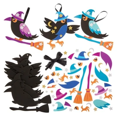 Hanging Decoration: This multipack of spooky crow decorations is an entertaining craft activity for creative kids. These all-in-one kits have all the pieces kids need to make their own crows, that are perfect for decorating Halloween parties and celebrations Kids Craft Kit: Boys and girls of all abilities will be able to complete these simple to make foam decorations. Kids can peel and stick the self-adhesive foam pieces to create scary decorations Foam Craft Decoration: These colourful decorations are mess free and require no glue. Finish decorations by attaching the handy hanging ribbon supplied to display as fun Halloween decorations Included in the Pack: This pack contains 8 kits in 8 assorted designs. Each kit includes foam template, self-adhesive foam decorations and ribbon for hanging. Crow height 11.5cm-14cm Instructions included. No glue required Made by Experts: Baker Ross has been designing and providing the very best art and craft supplies, and toys to schools, groups and parents for over 40 years. All products conform to General Product Safety Regulations, and state age recommendation where applicable.